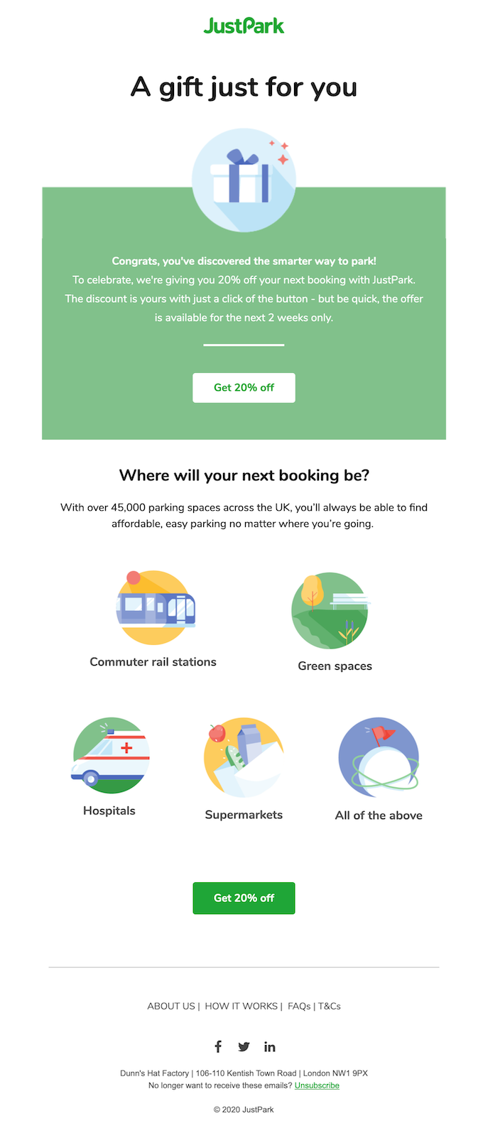A series of welcome emails for customers who had only used JustPark mobile payment once resulted in a 13% increase YoY in pre-bookings (as opposed to ad hoc mobile payments on arrival at a car park) equating to £120K+ in revenue per year.