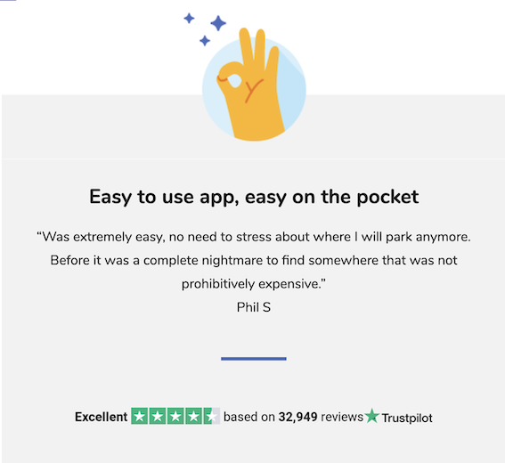 Designing and writing a selection of pop-up exit modals (which appeared on screen when customers stayed for a length of time on the booking page) encouraged completion of purchase by 3%. The exit modal that inspired the most confidence and persuaded customers to complete their booking was JustPark’s 4.6 TrustPilot rating.