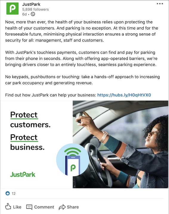 B2B content included a focus on highlighting benefits of JustPark for Asset Managers in the Property and Hospitality industries to rent out unused car parking spaces.