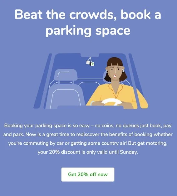 Operating during lockdowns, as well as periods when the country was opening up again presented its challenges, but also opportunities. JustPark was cited by the government as a Covid-19 Best Practice Service specifically for beach visits during the summer of 2020 when many travel restrictions were still in place and the British coast attracted much higher levels of holidaymakers than usual (On the B2B front, we won Cornwall County Council as a client). We dialled up our comms to let NHS staff know that we offered them a 10% discount and for businesses returning to offices, our easy-to-use app was the best contact-free solution.